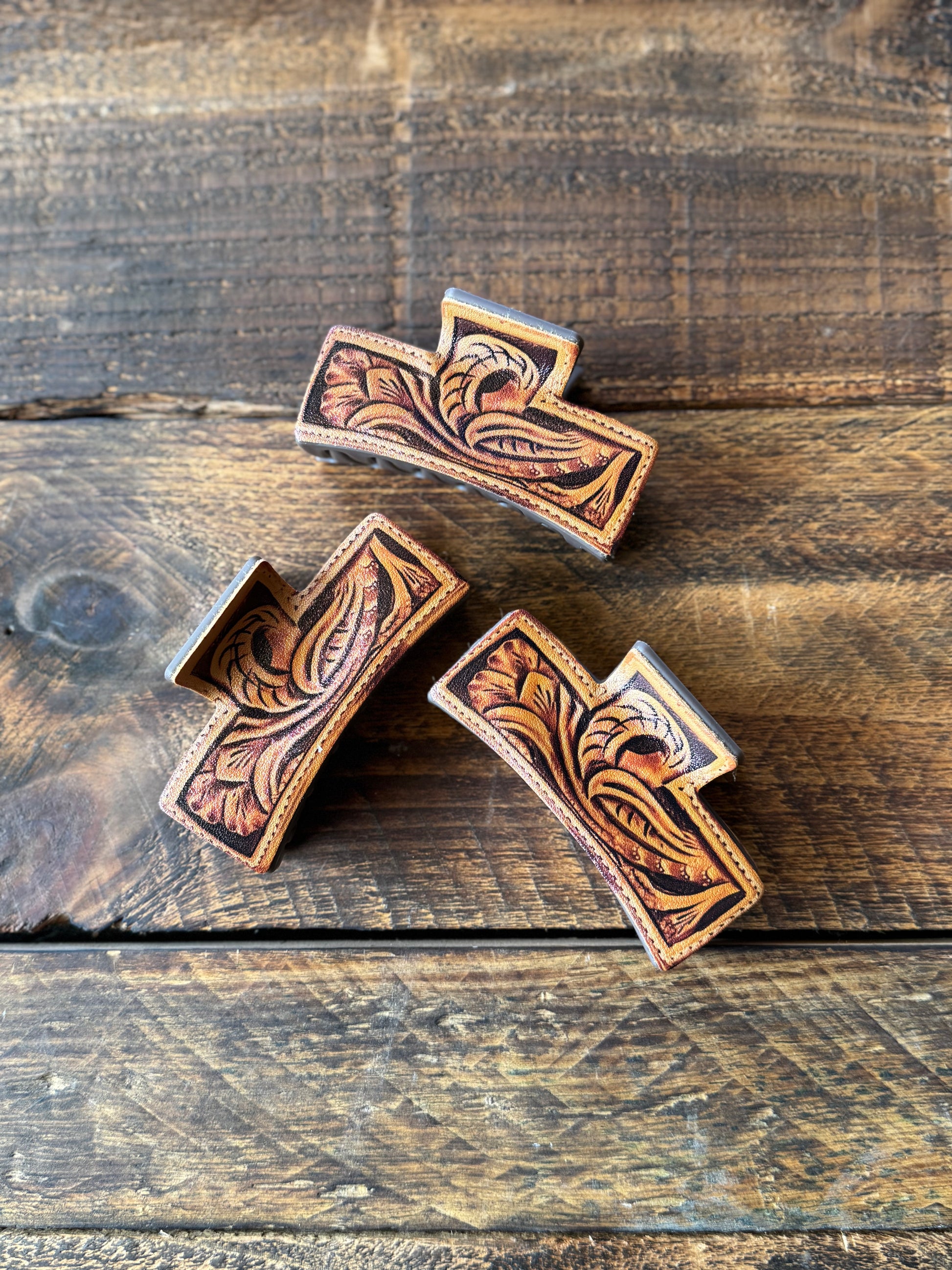 Tooled Leather Claw Clip